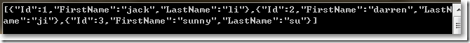 public class PersonController : ApiController {public IEnumerable<Person> GetAllPersons(){ return new List<Person> {new Person(){Id = 1, FirstName = "jack", LastName = "li"},new Person(){Id = 2, FirstName = "darren", LastName = "ji"},new Person(){Id = 3, FirstName = "sunny", LastName = "su"} };} }在瀏覽器中輸入: