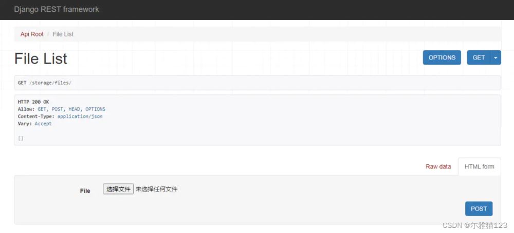 運行后臺服務 python manage.py runserver 0.0.0.0:8000,訪問 http://xx.xx.xx.xx:8000/storage/files/,界面如下: