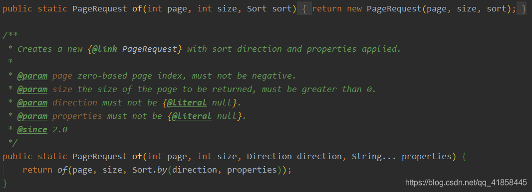 - 1. 原因最近學習spring data JPA 時候要用到分頁功能,但是發(fā)現網上所有教程都是通過new PageRequest()方法解決分頁,實際使用中發(fā)現已經過時2. 解決方案替代的方法是不要new PageRequest,而是直接用 PageRequest.of這個方法 根據你的需求選擇入參...